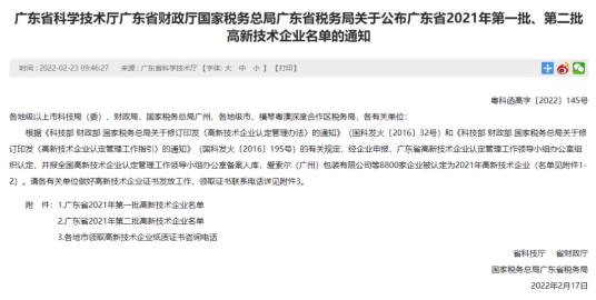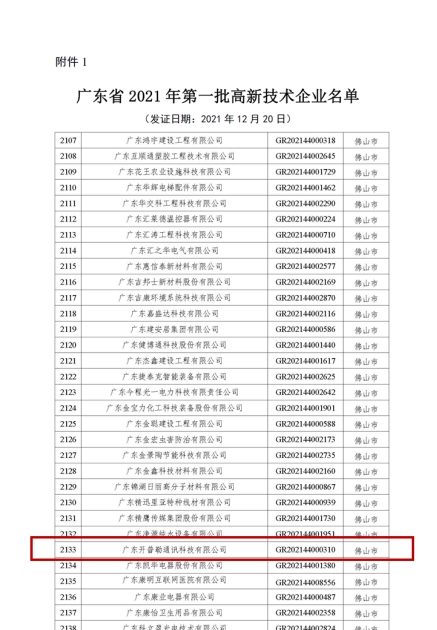 2021年广东省高新技术企业认定证书