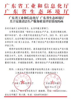 2022年6月,广东省工业和信息化厅、生态环境厅联合公布了珠三角9市82家清洁生产技术服务单位服务质量评估结果。